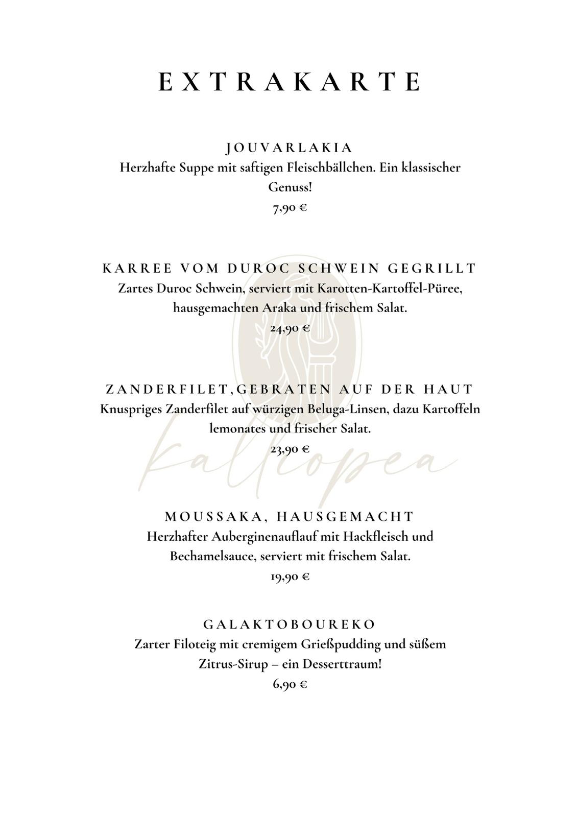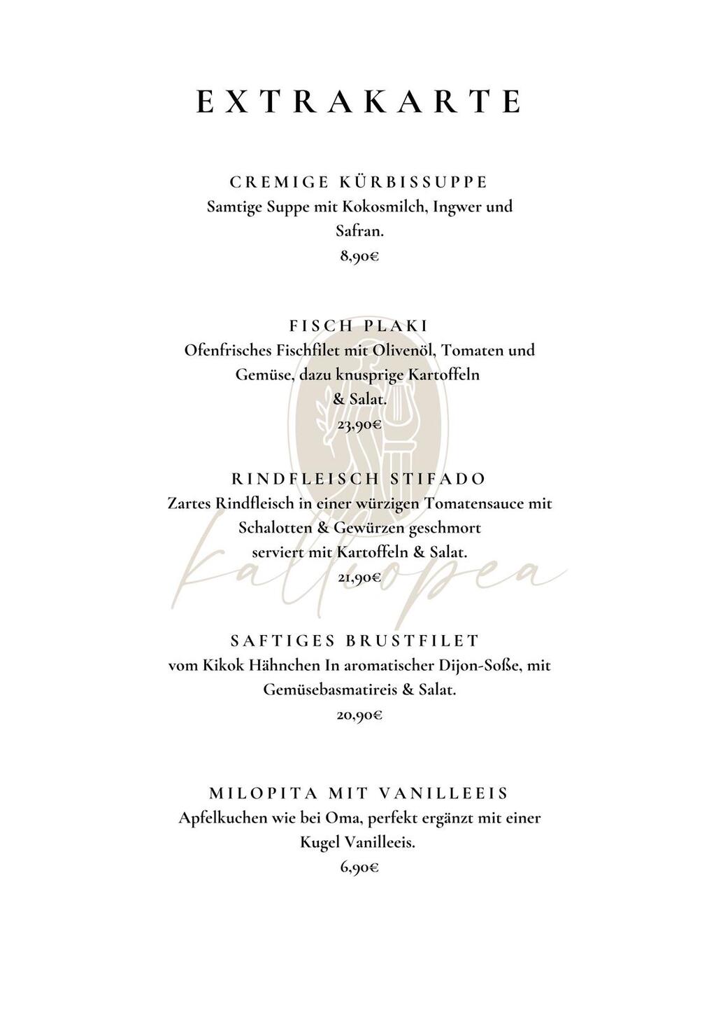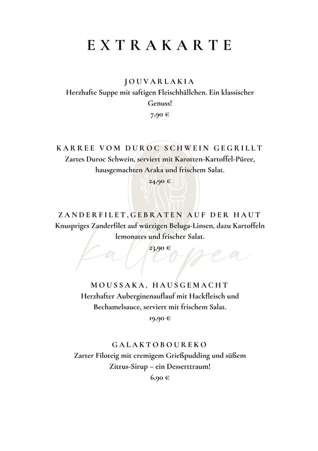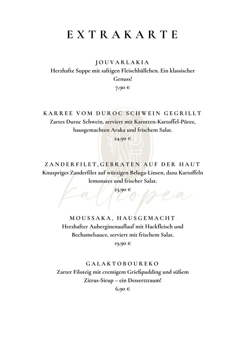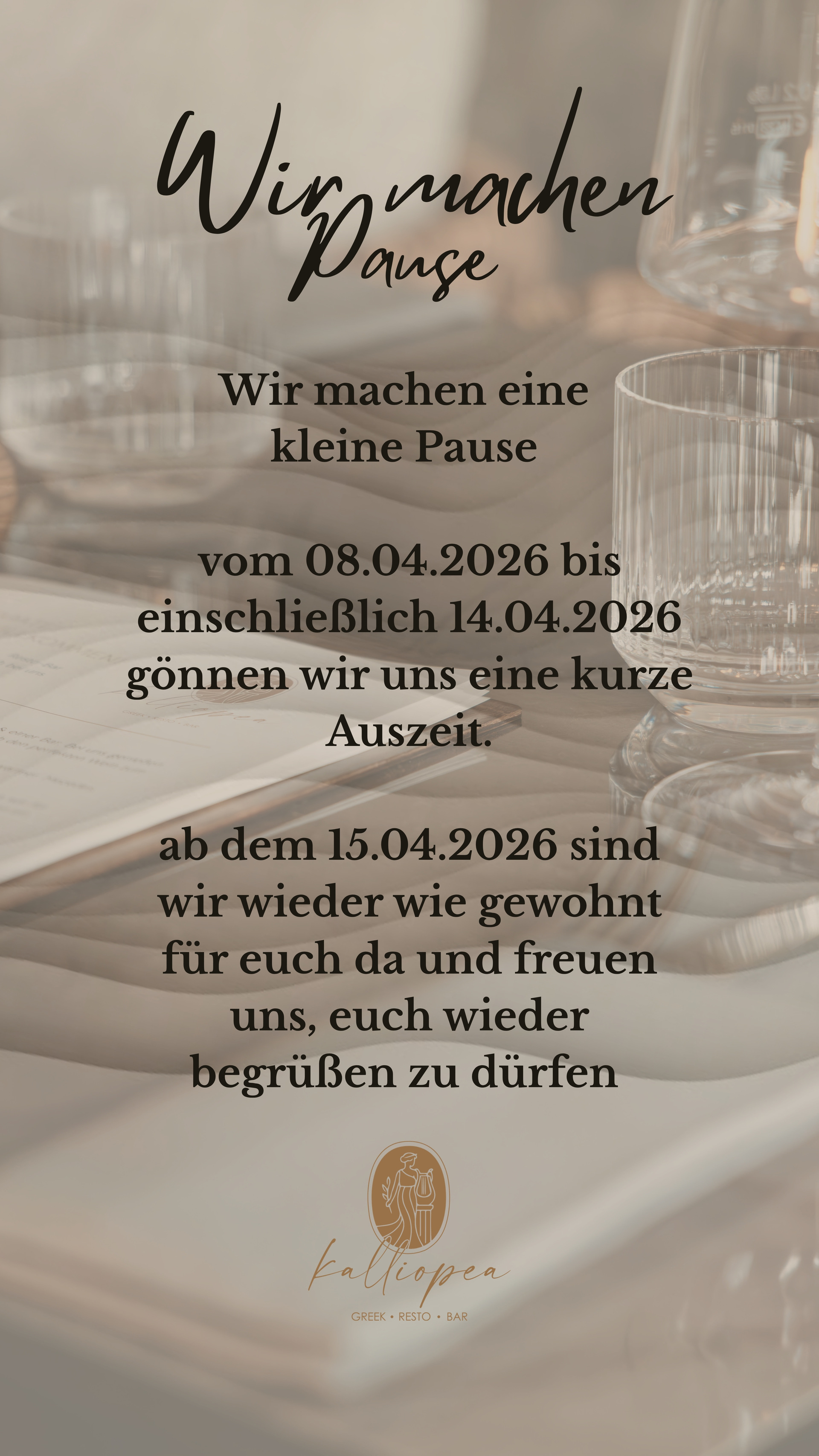 Ihr Kalliopea-Team wünscht Ihnen einen genussvollen Aufenthalt. Καλή όρεξη! Guten Appetit!