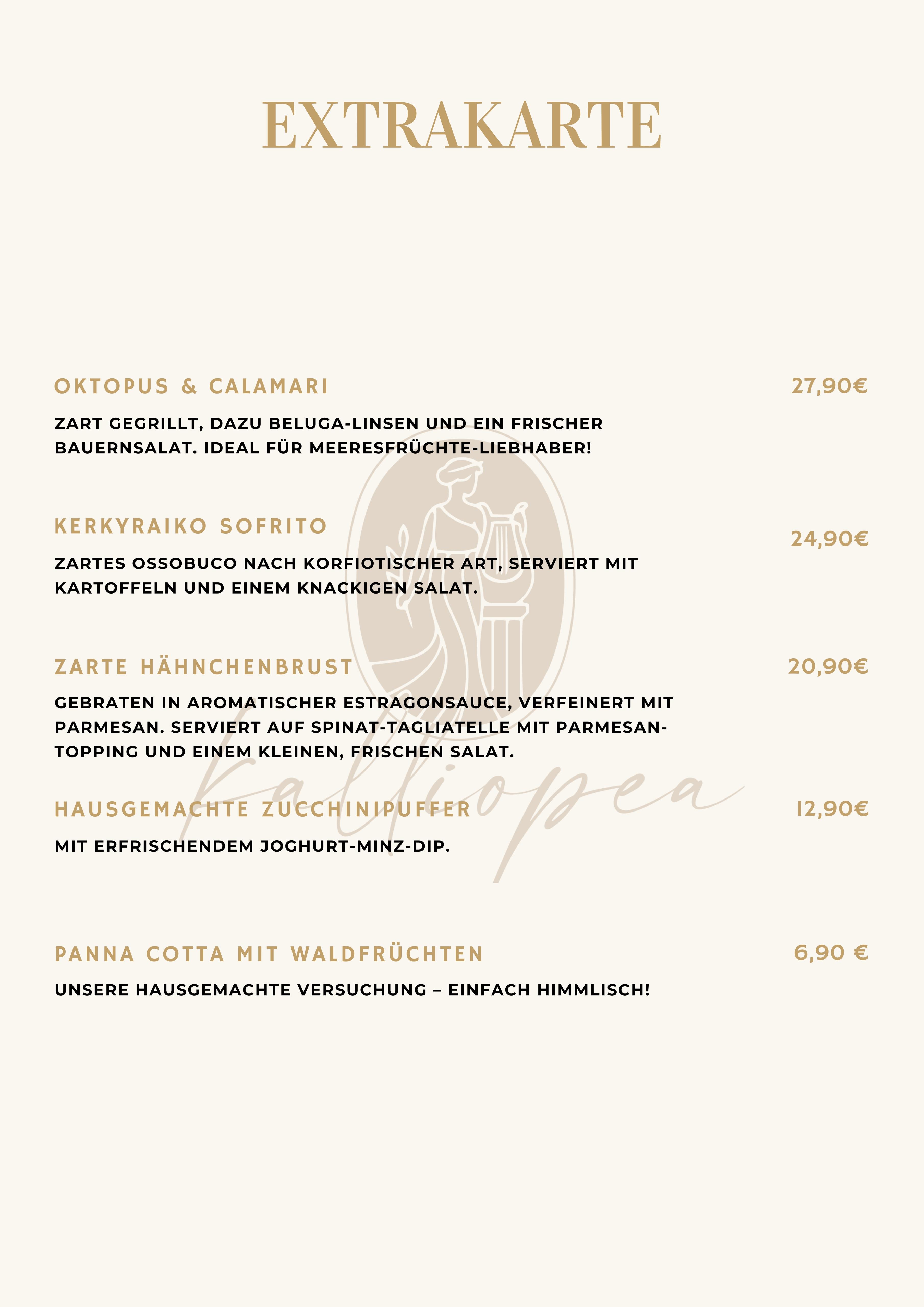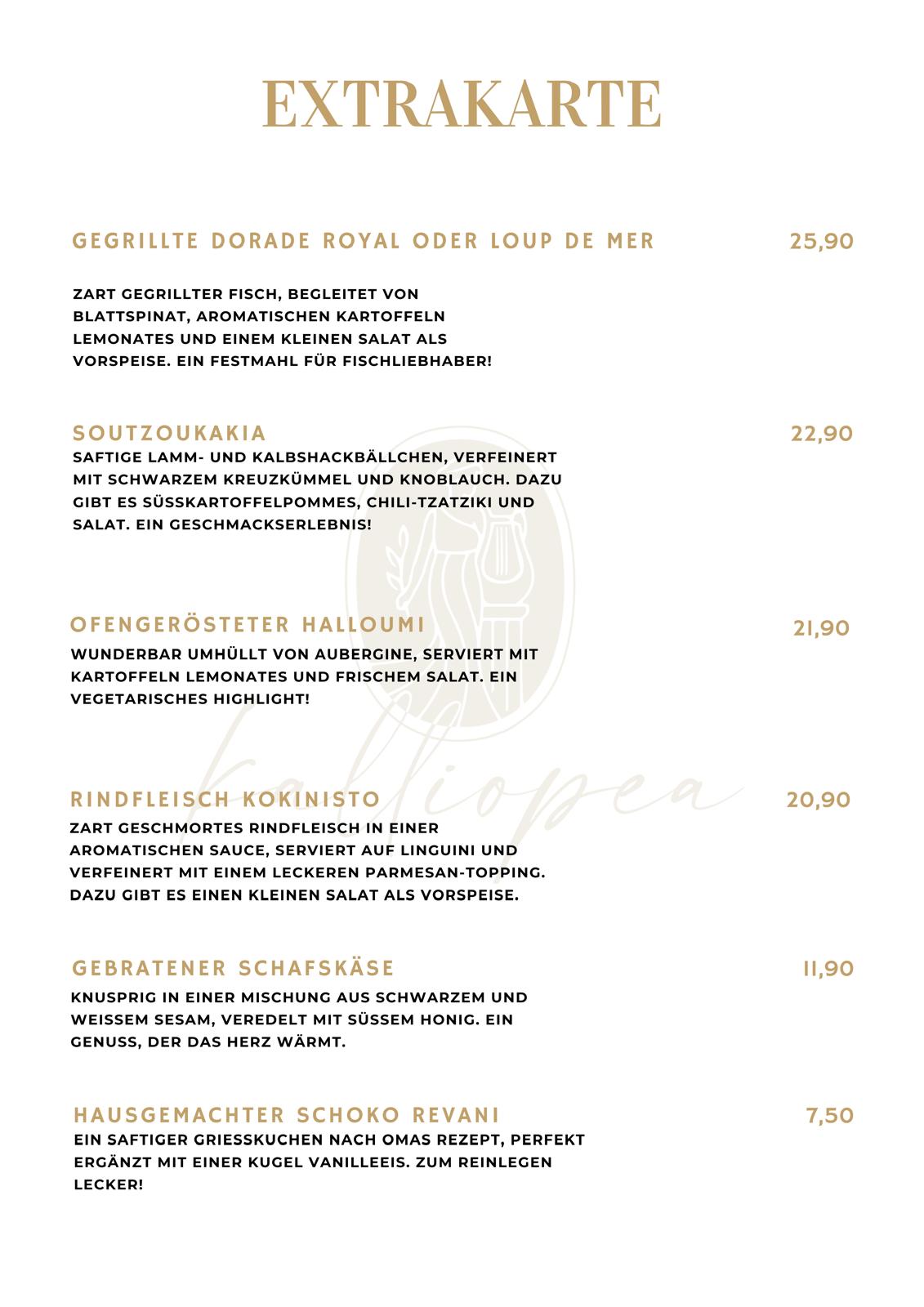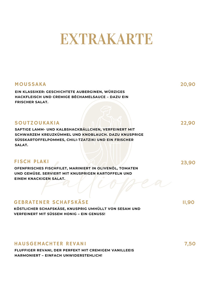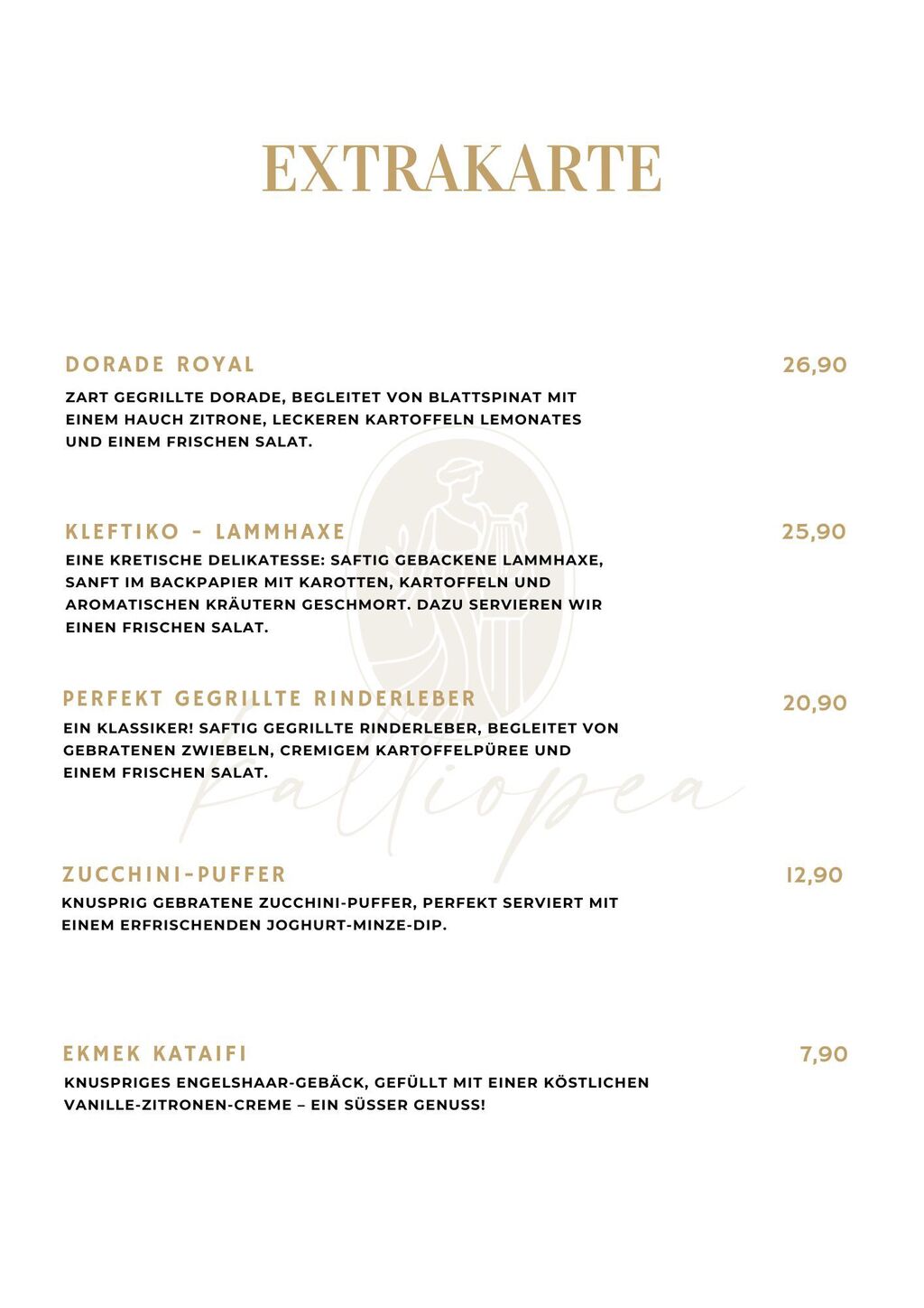 Ihr Kalliopea-Team wünscht Ihnen einen genussvollen Aufenthalt. Καλή όρεξη! Guten Appetit!