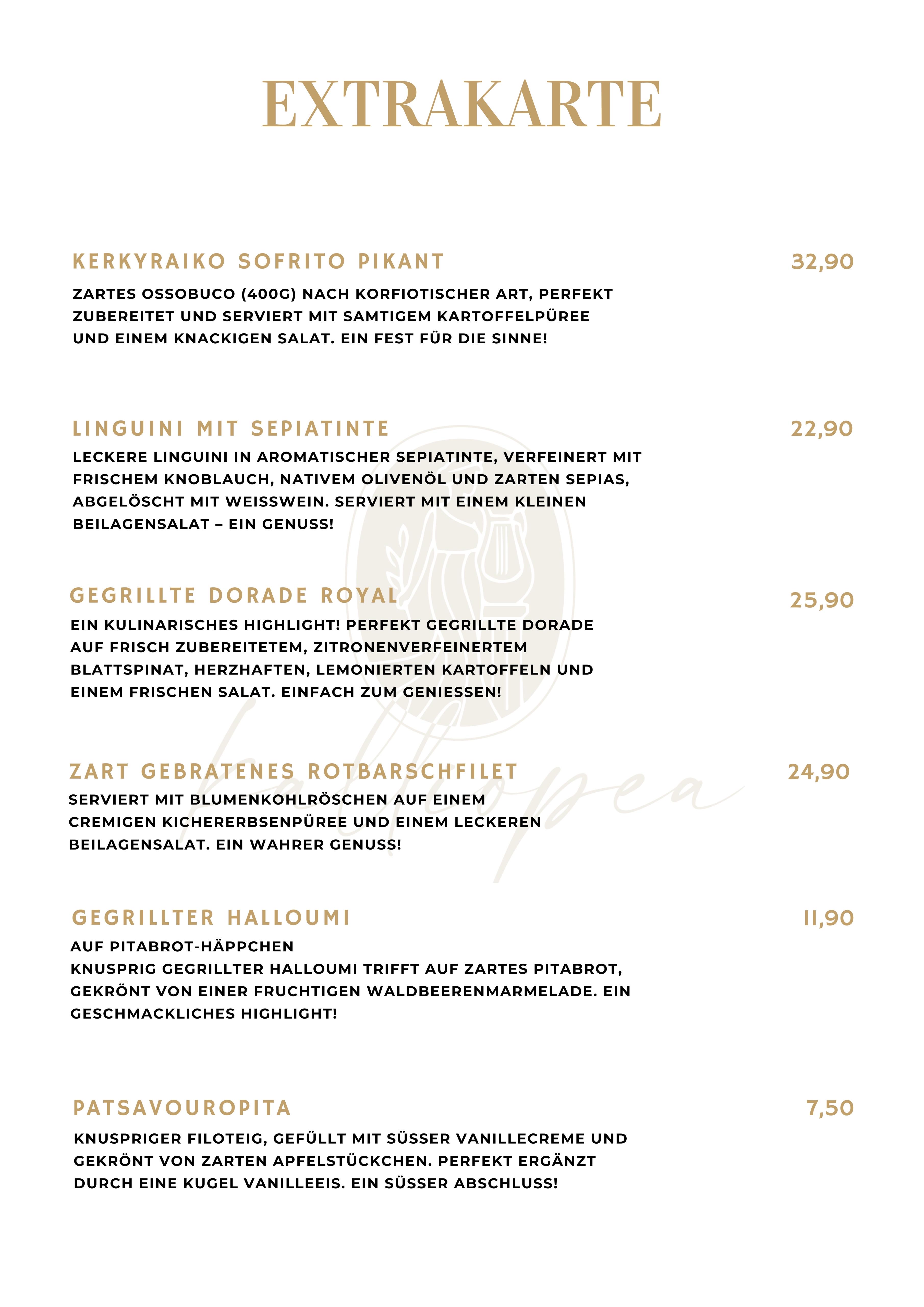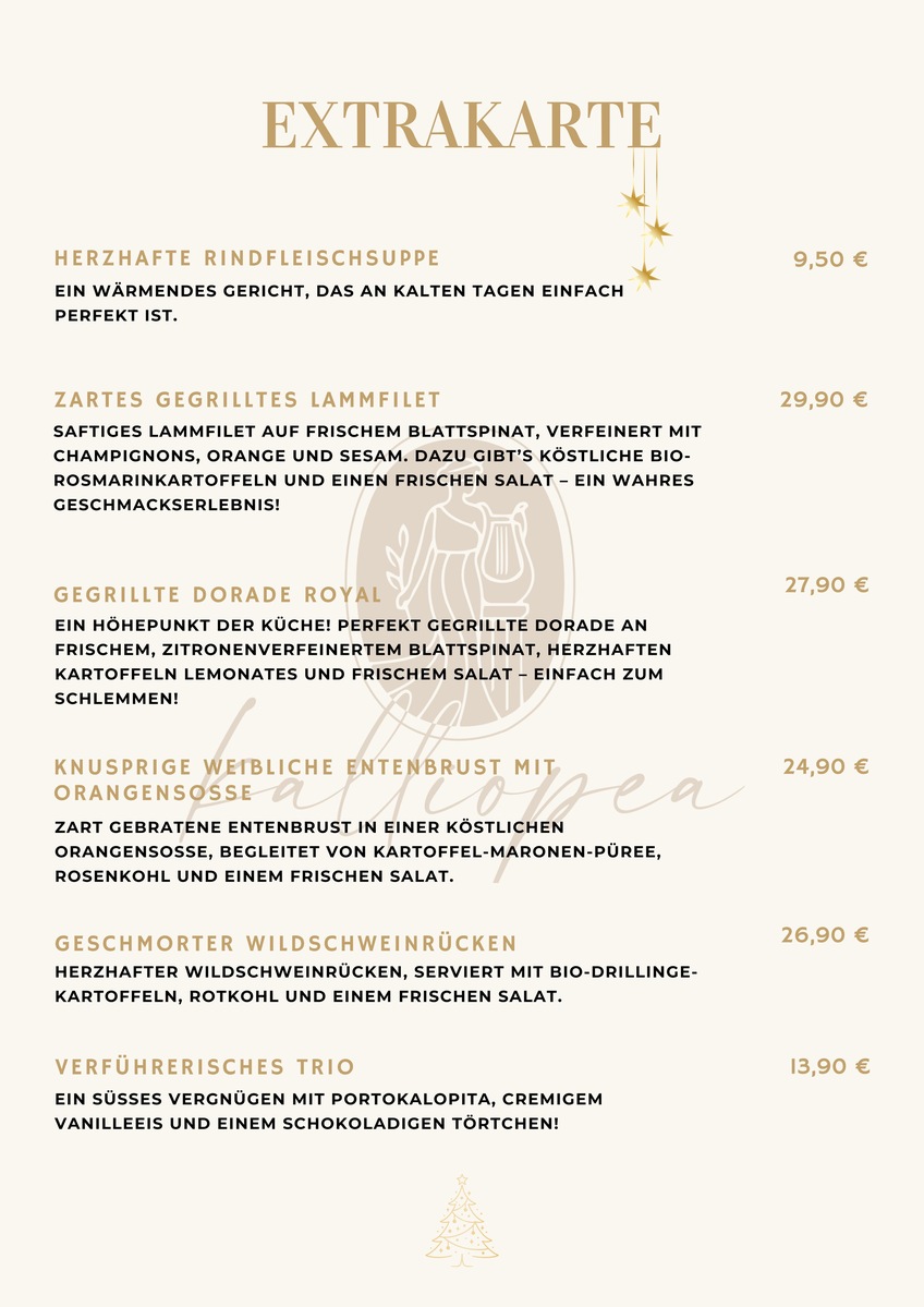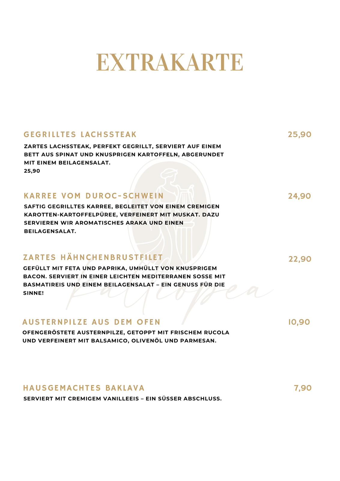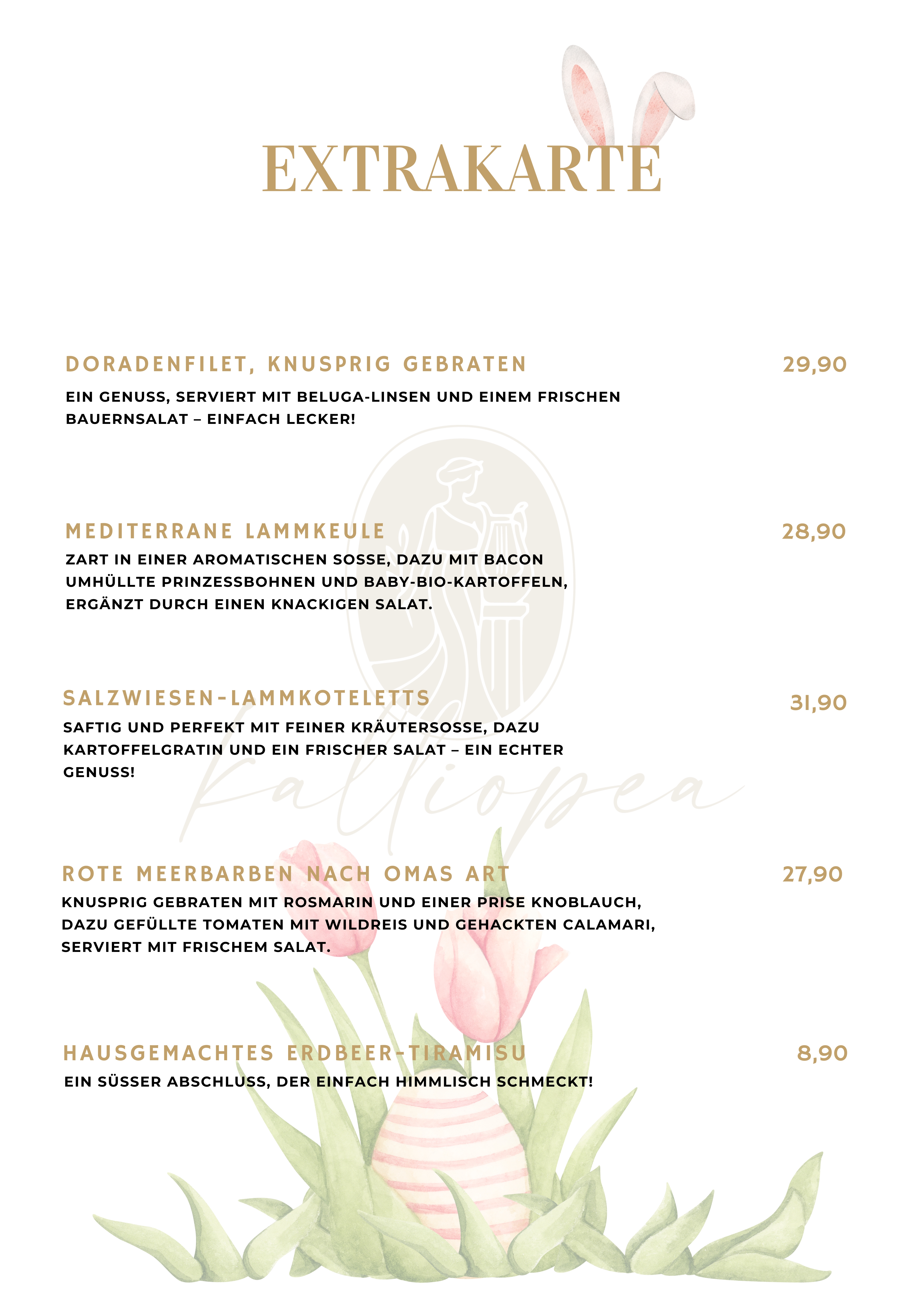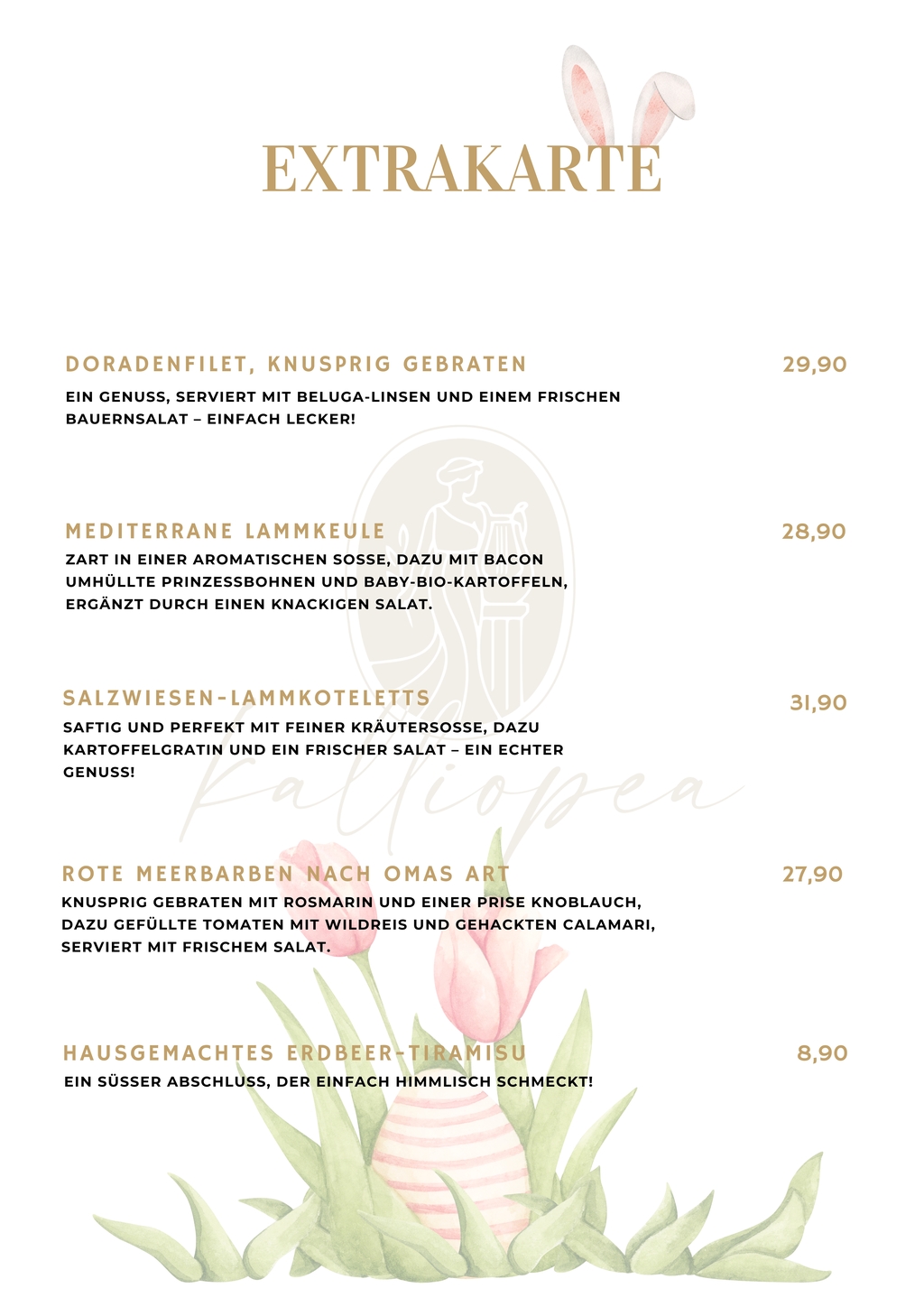 Ihr Kalliopea-Team wünscht Ihnen einen genussvollen Aufenthalt. Καλή όρεξη! Guten Appetit!